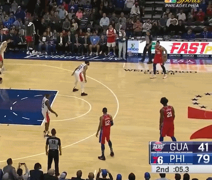 上次是2019年,广州龙狮对还是76人的75人