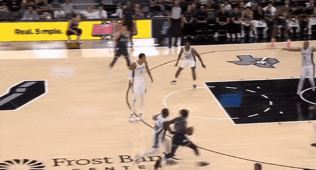 管子煜进攻前摇,运球突破都做得挺不错,可惜马刺最后一道屏障——文班亚马,实在是太变态了,直接一掌大帽拒之门外。