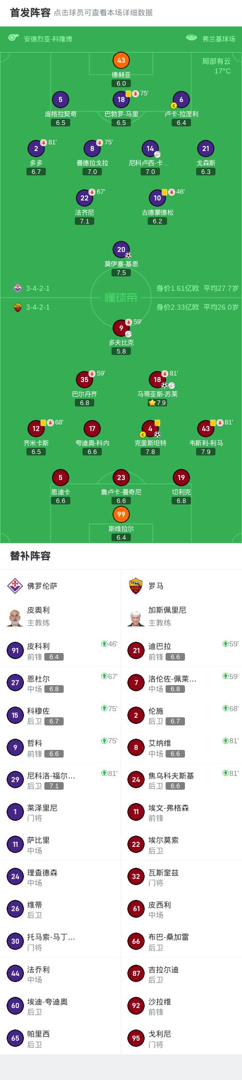 上一篇:佛罗伦萨vs罗马:德赫亚、多多首发,克里斯坦特、多夫比克出战