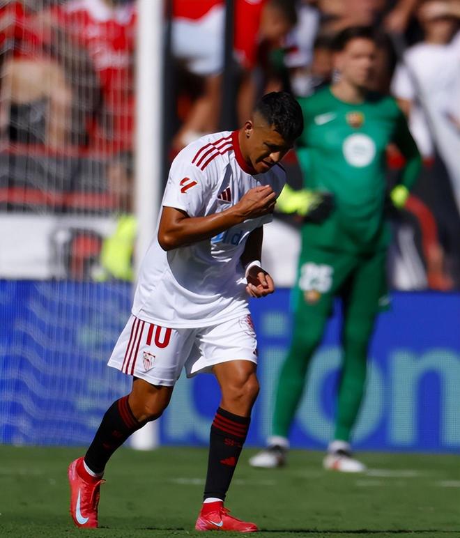 第35分钟,塞维利亚再次轻易打穿巴萨的防线,伊萨克·罗梅罗上演浪费机会帽子戏法,桑切斯一脸沮丧。